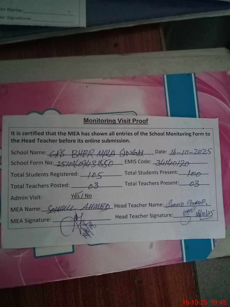 | EMIS Code: 34140120 | Name of School: GPS BHER MALA SINGH | |||
