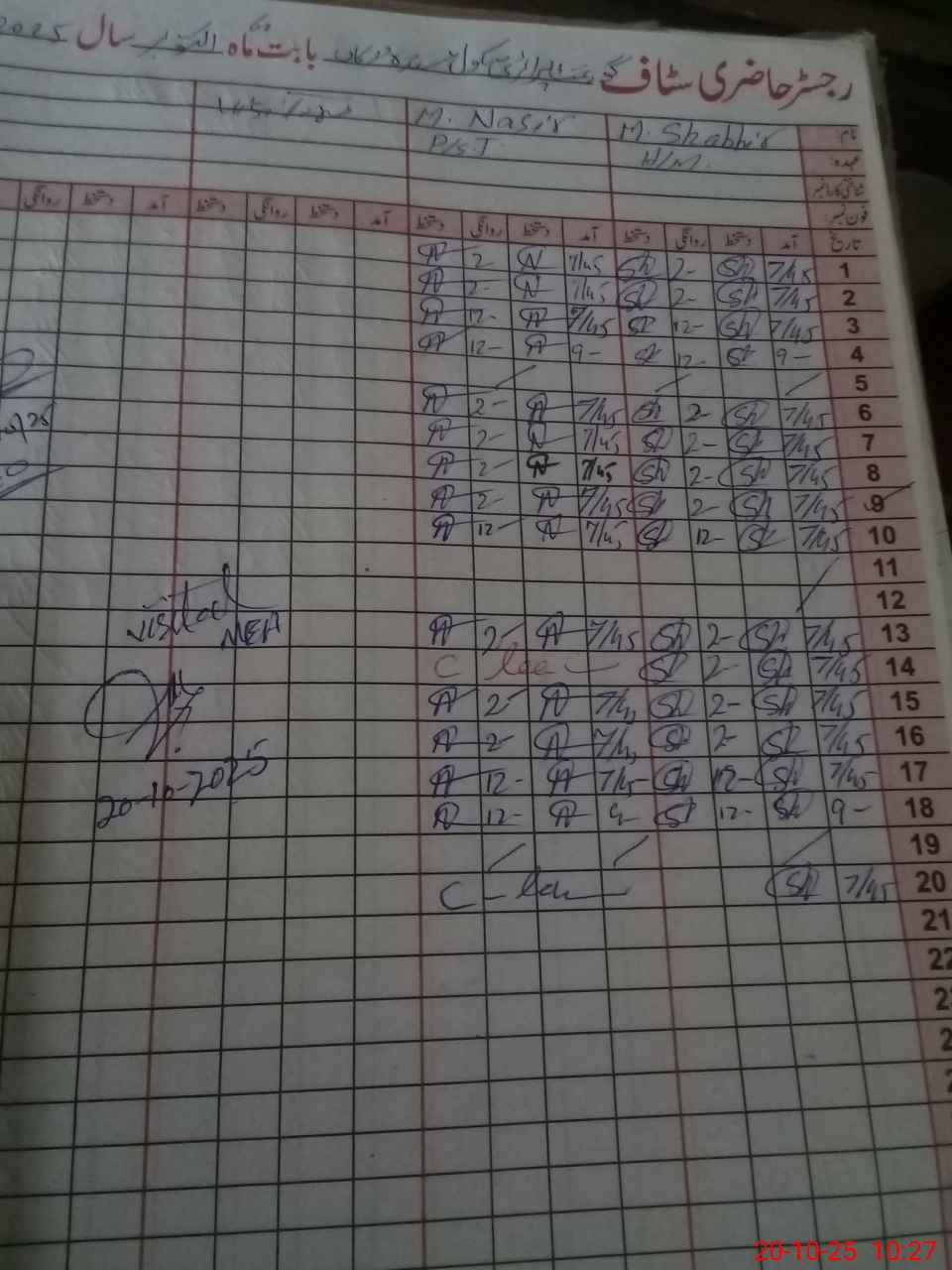 | CNIC | Full Name | Designation | R/C | Absence during last cal. month |