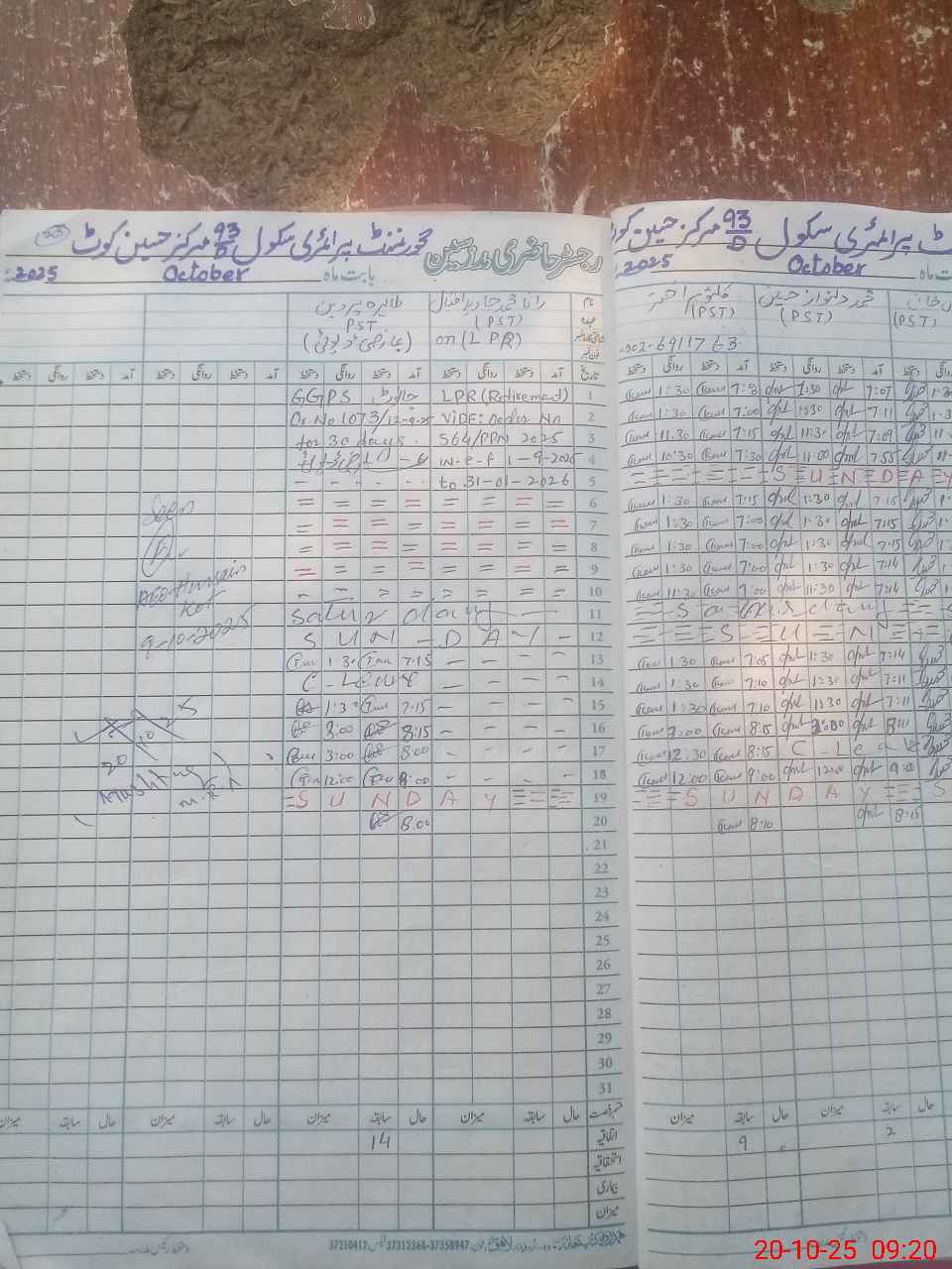 | CNIC | Full Name | Designation | R/C | Absence During Last Calender Month |