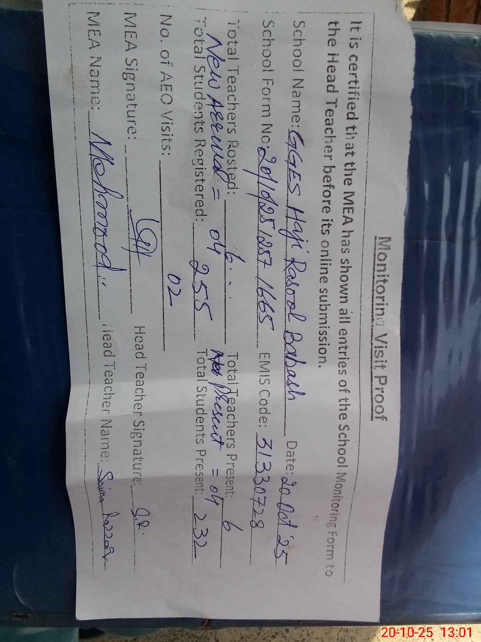 | EMIS Code: 31330728 | Name of School: GGES HAJI RASOOL BAKHSH | |||