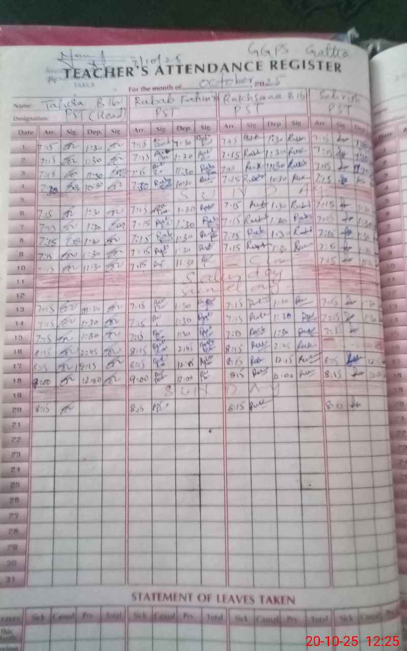 | Name: TA**** BI**** Designation: (School Headmaster's/Headmistress's) PST Phone/Cell Number: 03**** |
