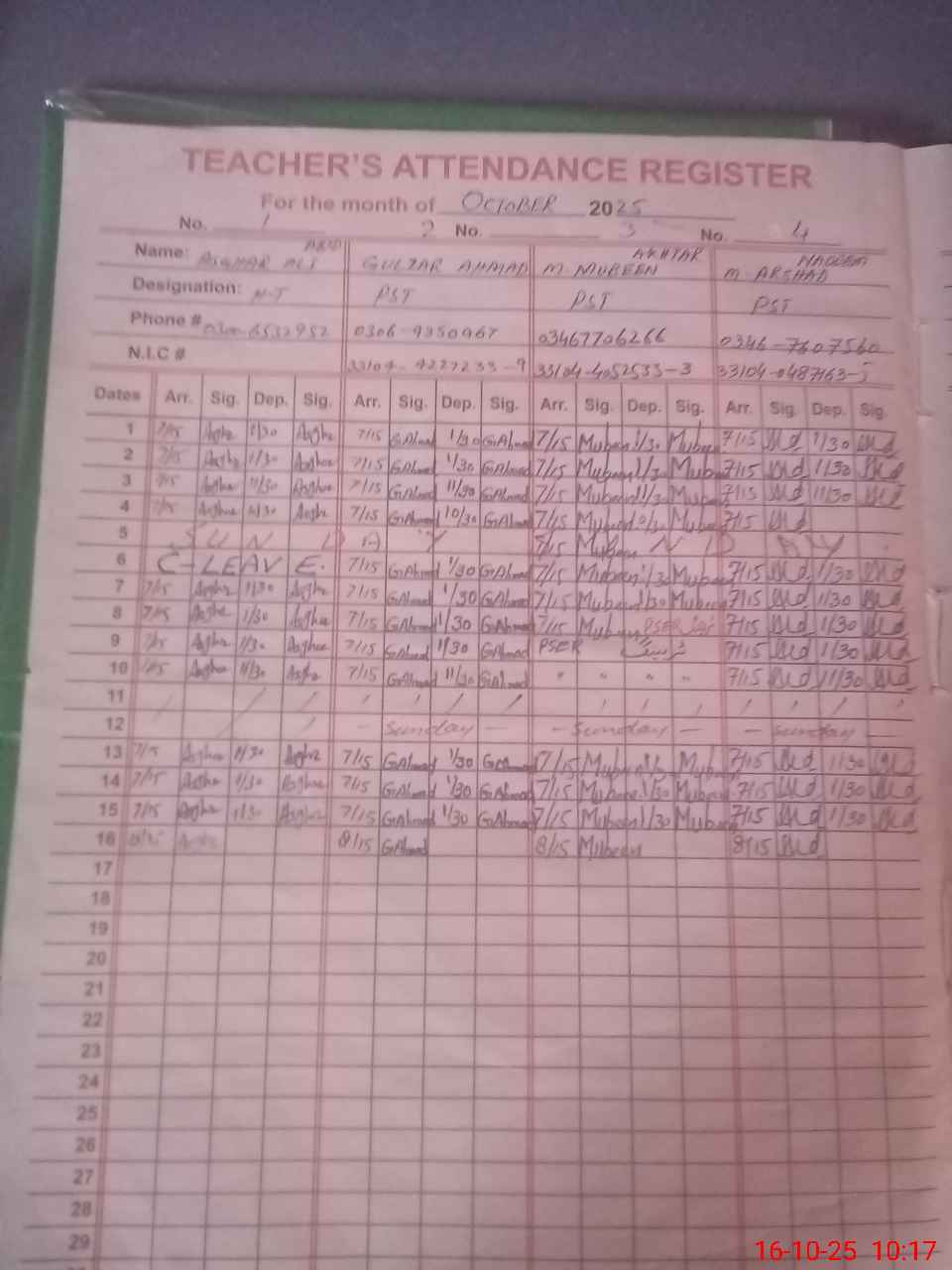 | Name: As**** Al**** Ab**** Designation: (School Headmaster's/Headmistress's) PST Phone/Cell Number: 03**** |