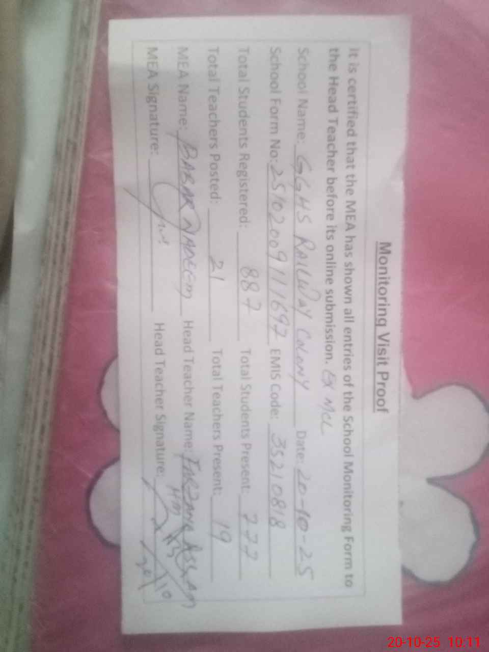 | EMIS Code: 35210818 | Name of School: GGHS RAILWAY COLONY MUGHAL PURA (EX-MCL) | |||