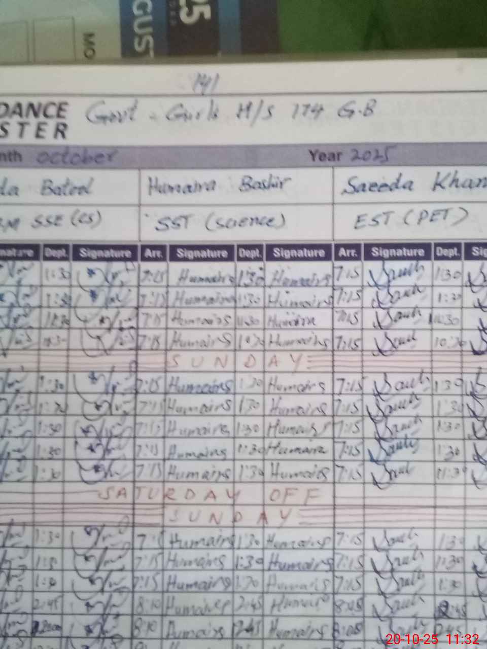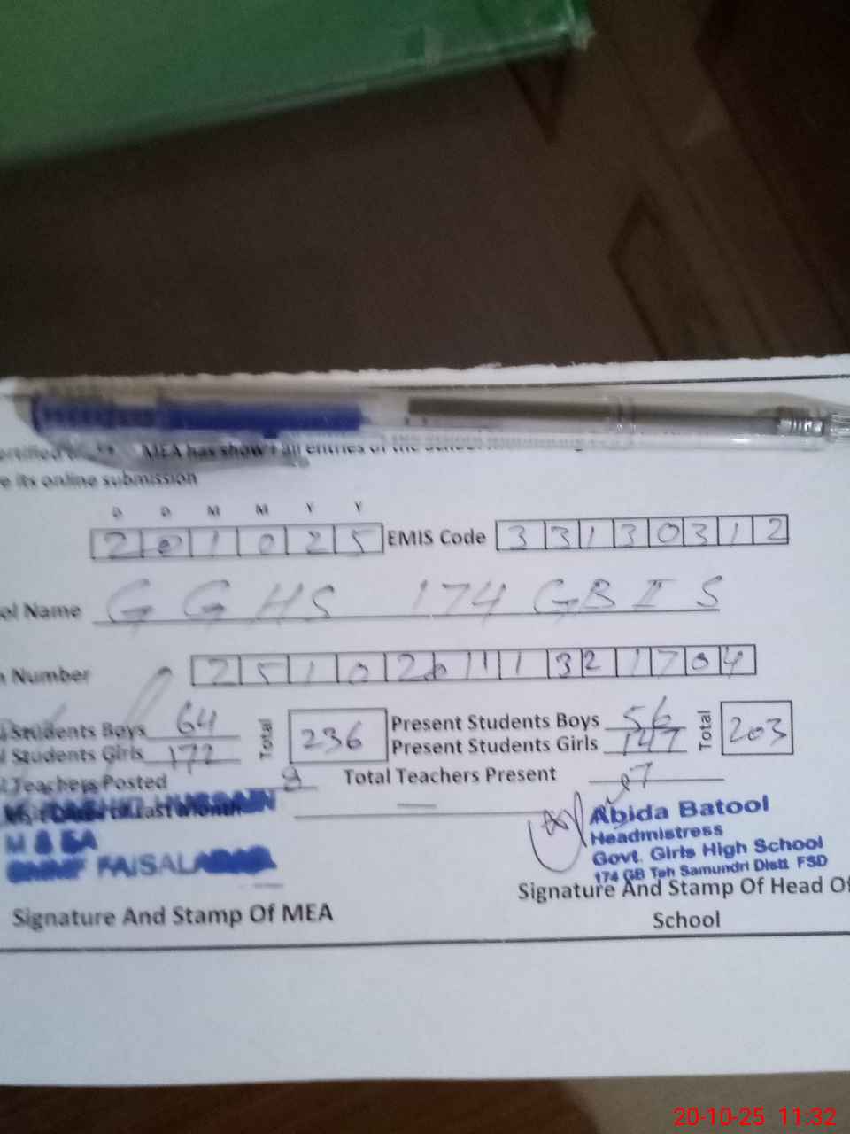 | EMIS Code: 33130312 | Name of School: GGHS CHAK NO 174 GB II SOUTH | |||