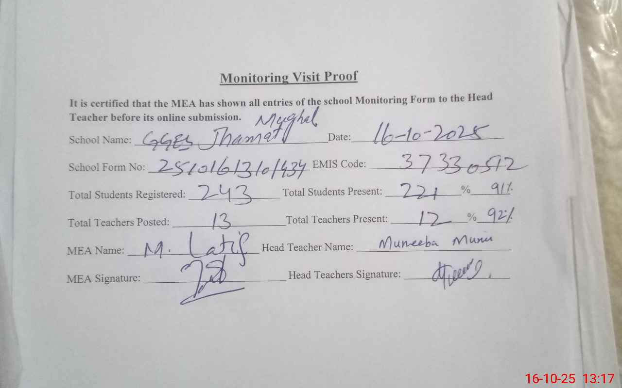 | EMIS Code: 37330512 | Name of School: GGES JUMMAT MUGHAL | |||