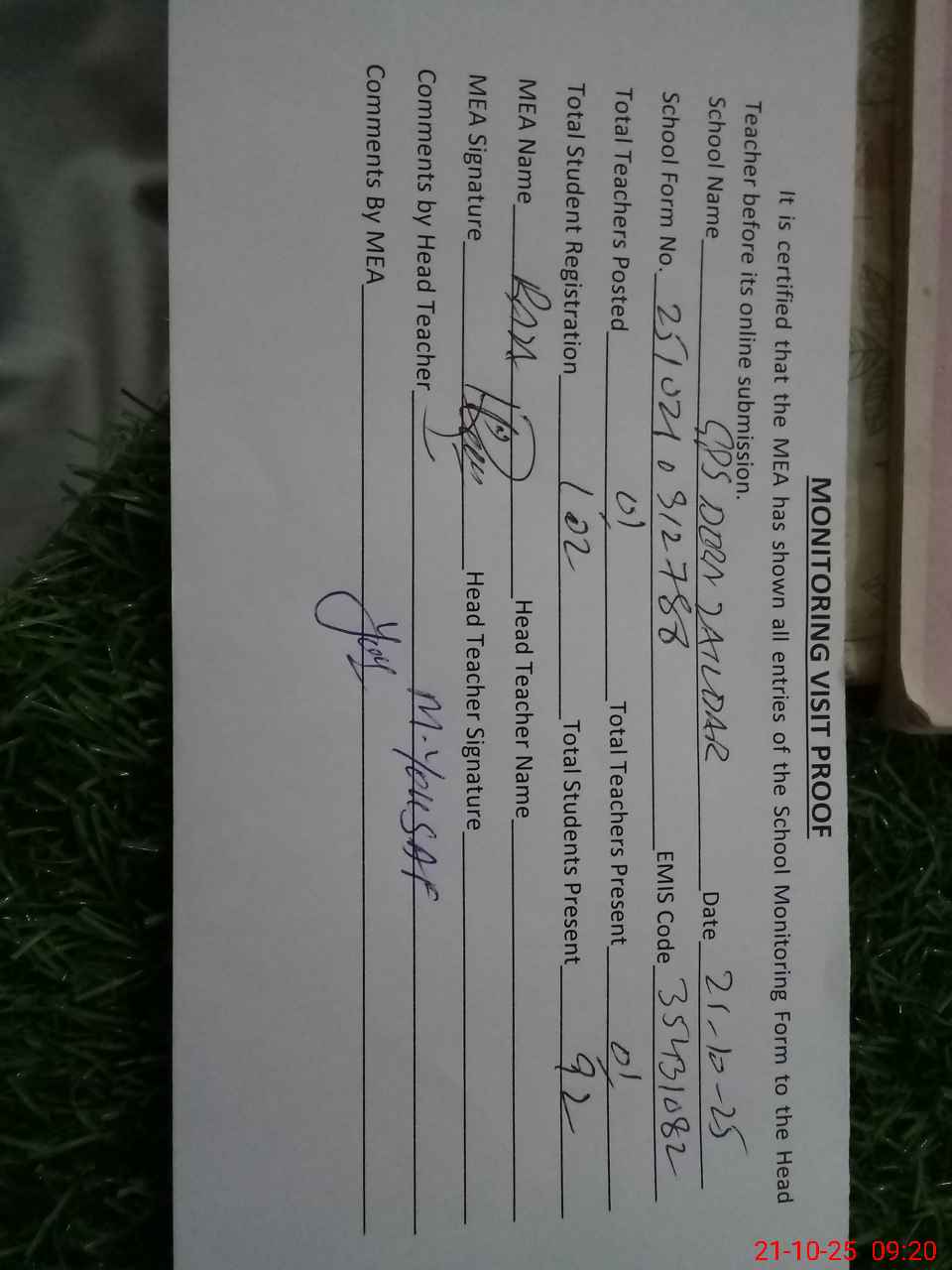| EMIS Code: 35431082 | Name of School: GPS DERA ZAILDAR | |||
