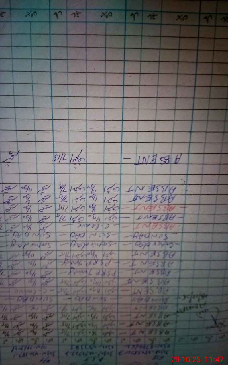 | CNIC | Full Name | Designation | R/C | Absence During Last Calender Month |