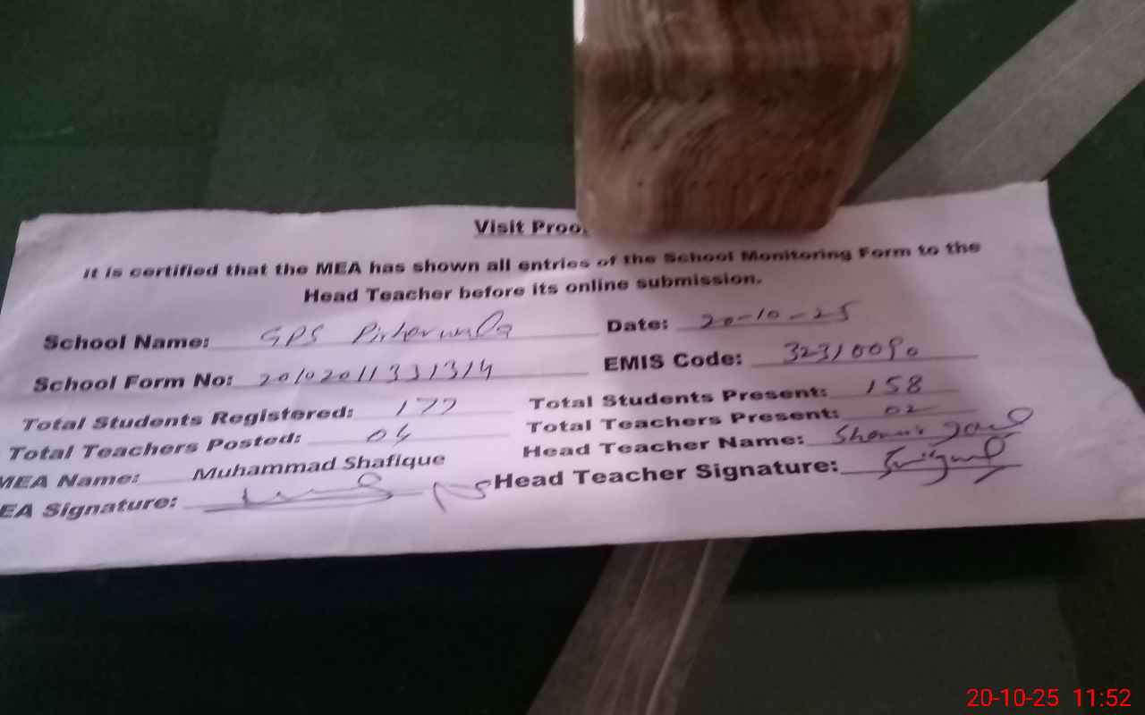 | EMIS Code: 32310090 | Name of School: GPS PIRHAR WALA | |||