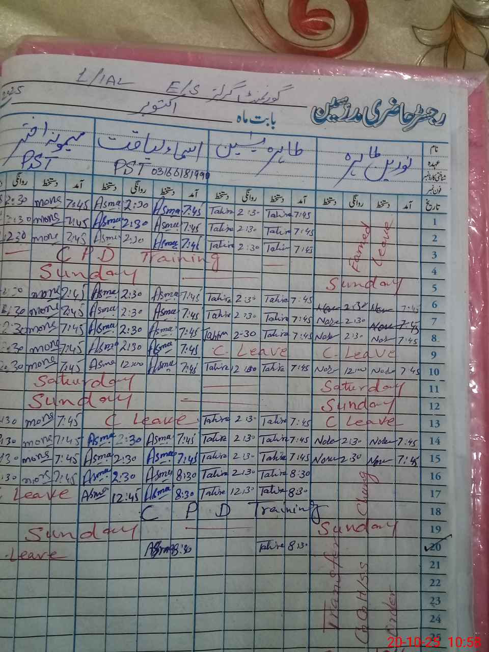 | Leave | Duty | Absent | Maternity | Medical | Ex- Pak |
