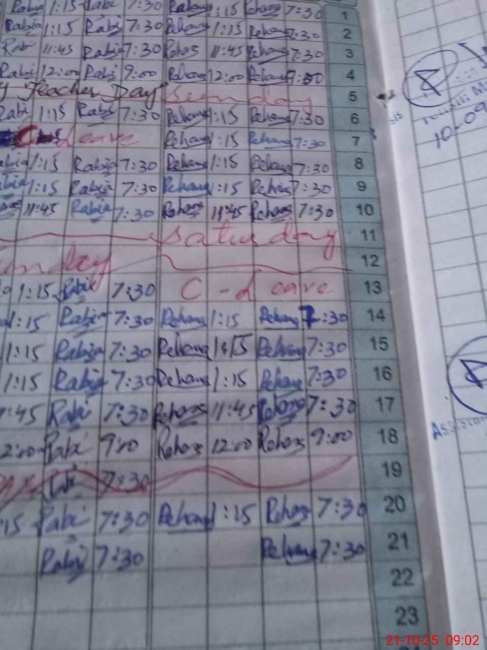 | Leave | Duty | Absent | Maternity | Medical | Ex- Pak |