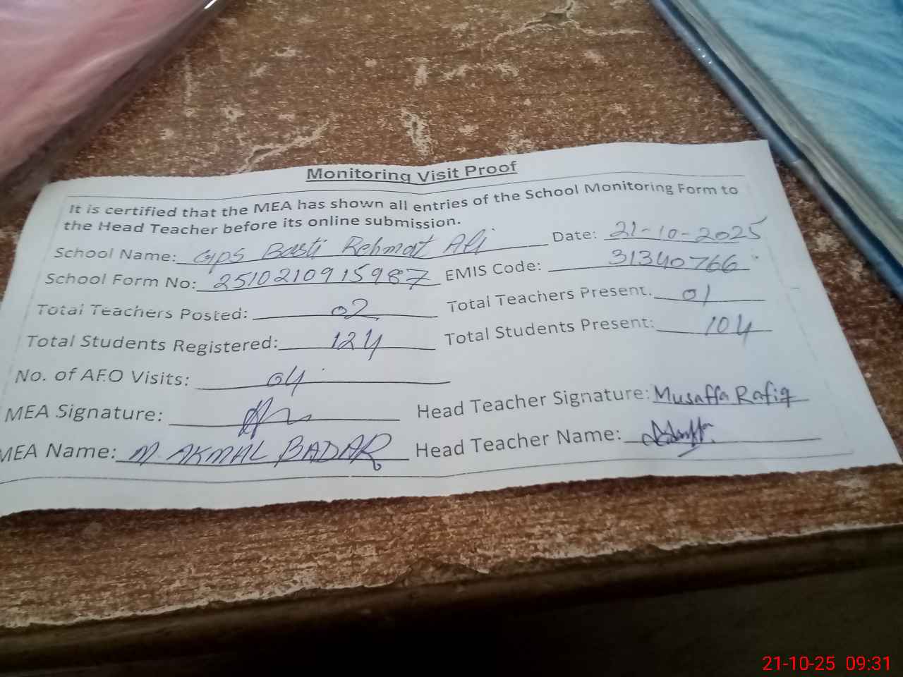 | EMIS Code: 31340766 | Name of School: GPS BASTI RAHMAT ALI | |||