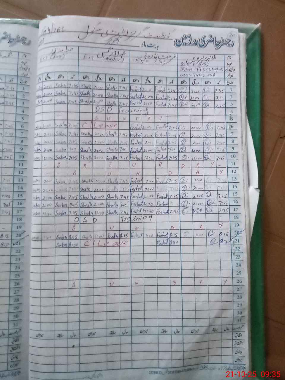 | Leave | Duty | Absent | Maternity | Medical | Ex- Pak |