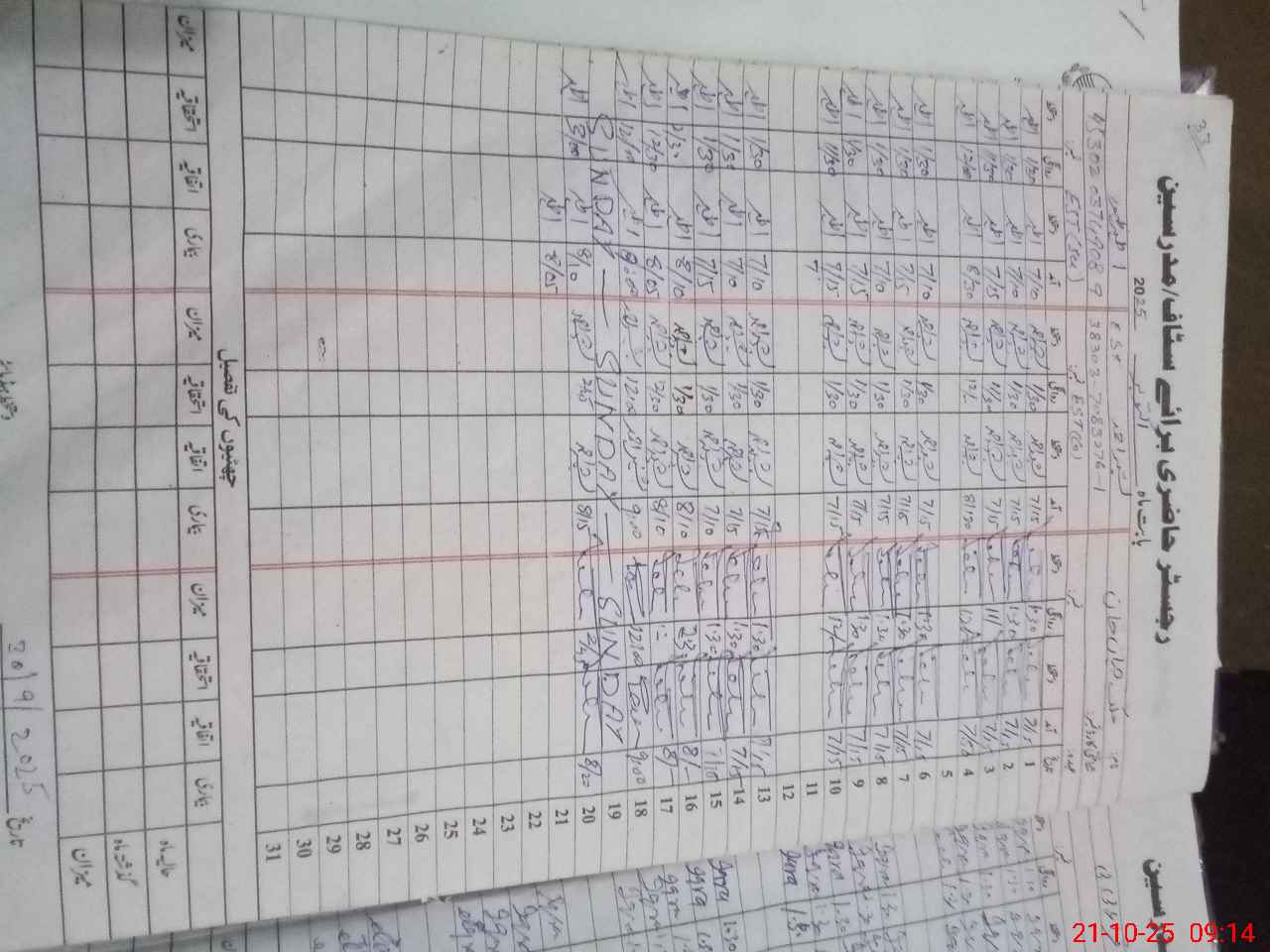 | 38**** | Ja**** Kh**** | 5 | 1 | 0 | 0 | 0 | 0 | 0 | 0 | 0 | 0 | 0 | Absent (Un-Authorized) |