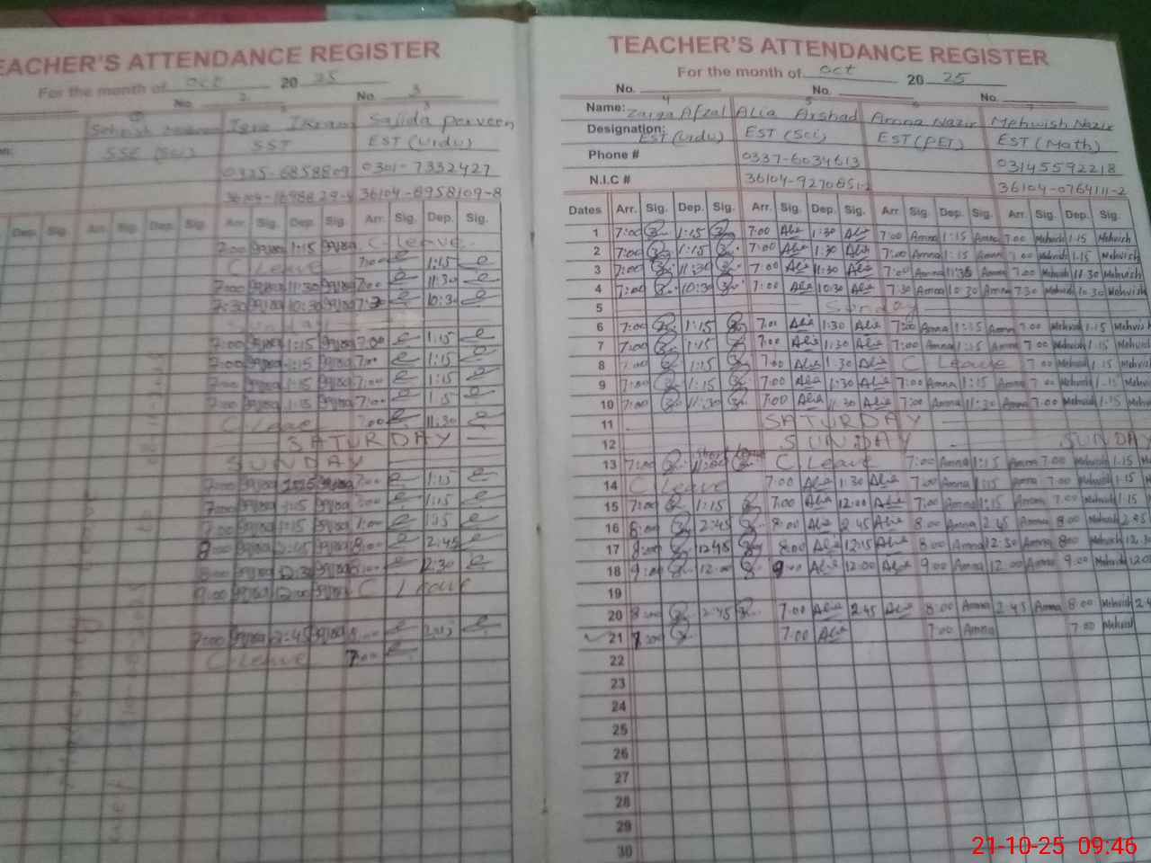 | CNIC | Full Name | Designation | R/C | Absence During Last Calender Month |