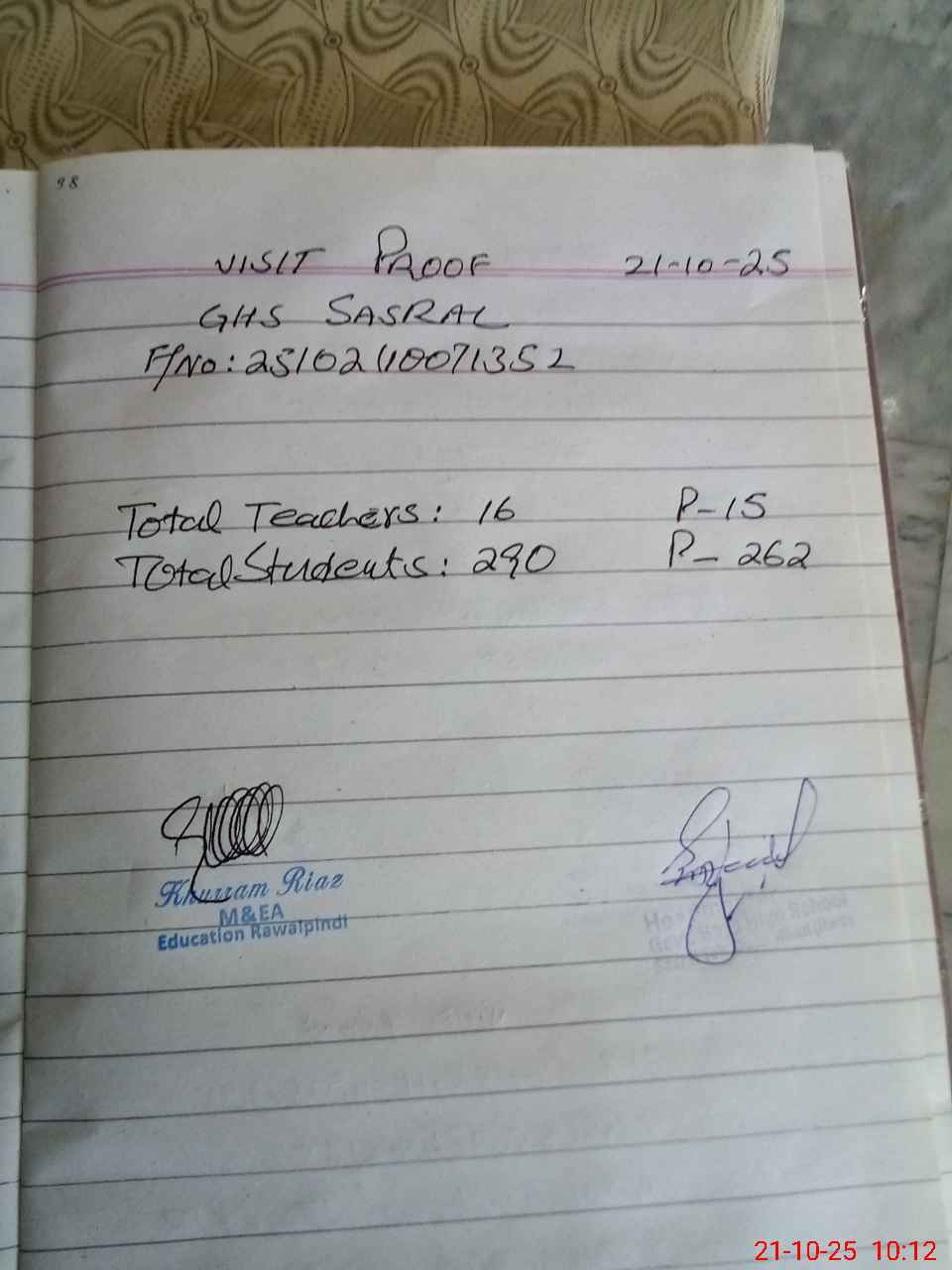 | EMIS Code: 37360035 | Name of School: GHS SASRAL | |||