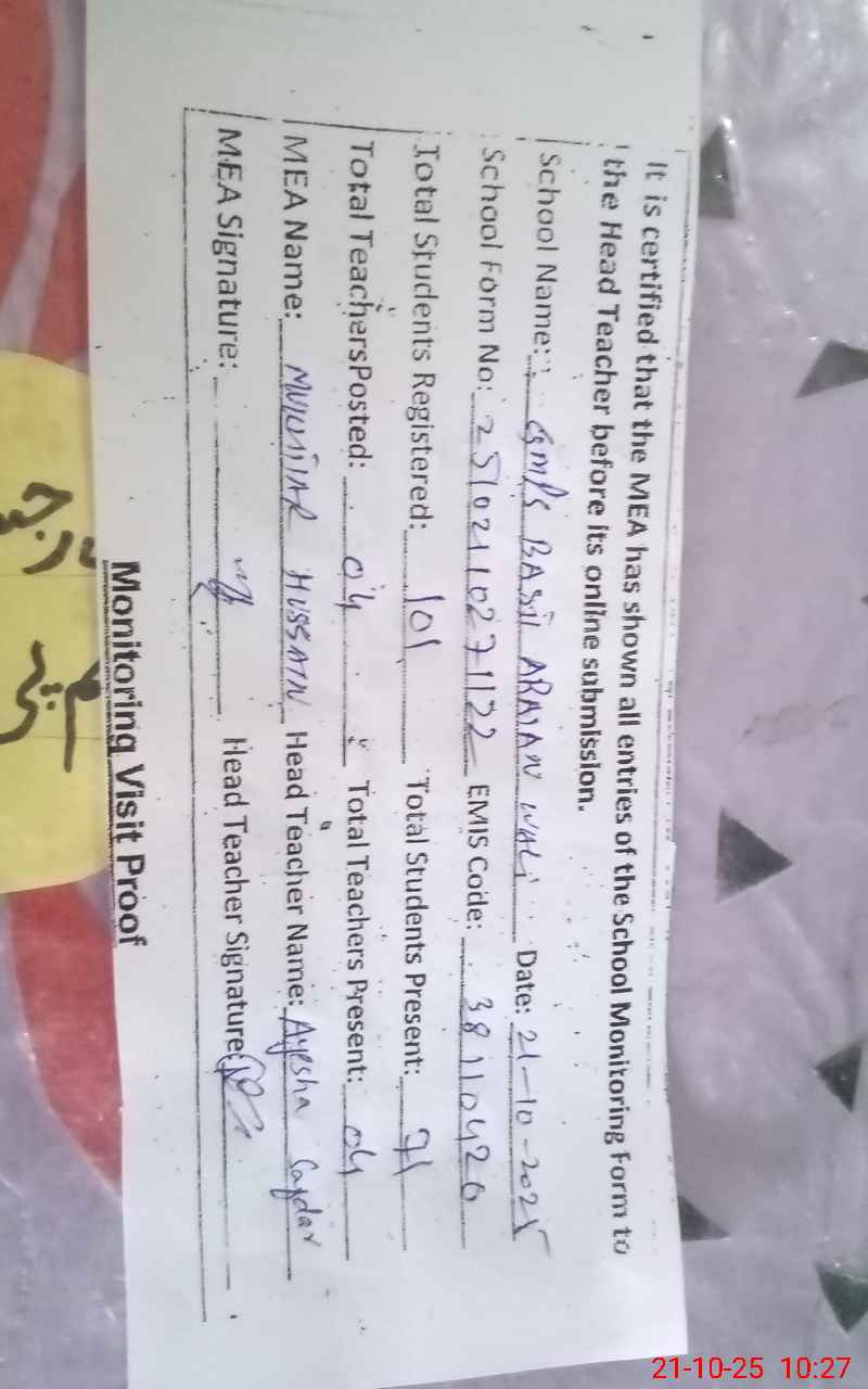 | EMIS Code: 38110420 | Name of School: GMPS BASTI ARAIAN WALI PO BHAKKAR | |||