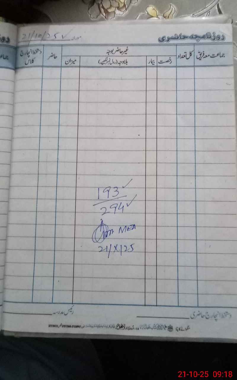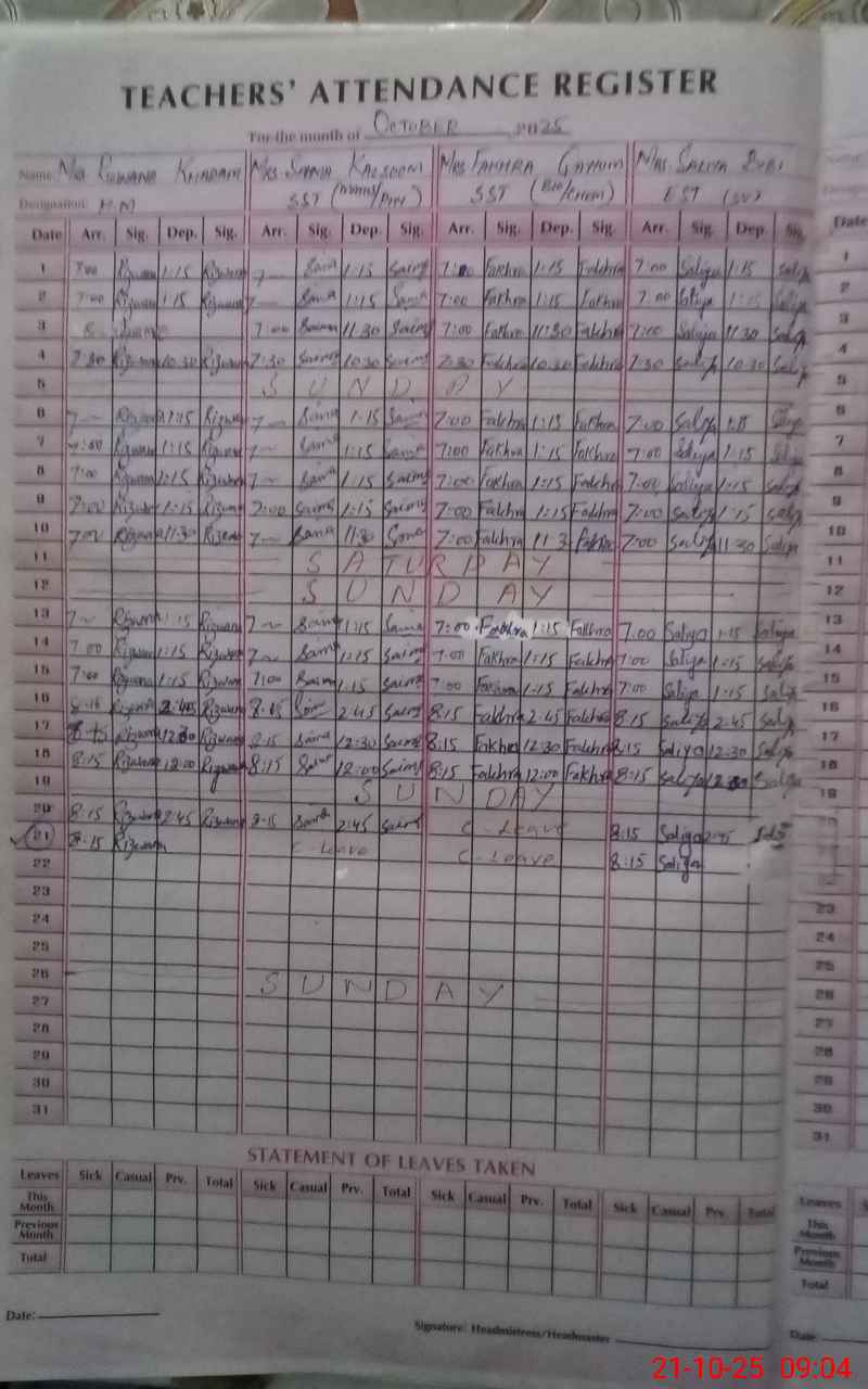 | Attendance Register | Head Teacher | MEA with School | Visit Proof |