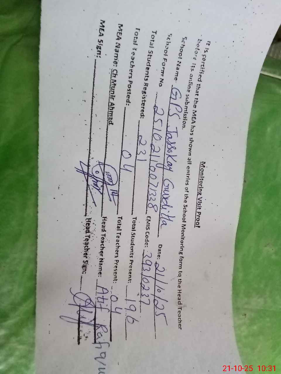 | EMIS Code: 39310237 | Name of School: GPS JASSO KAY GURDITTA | |||
