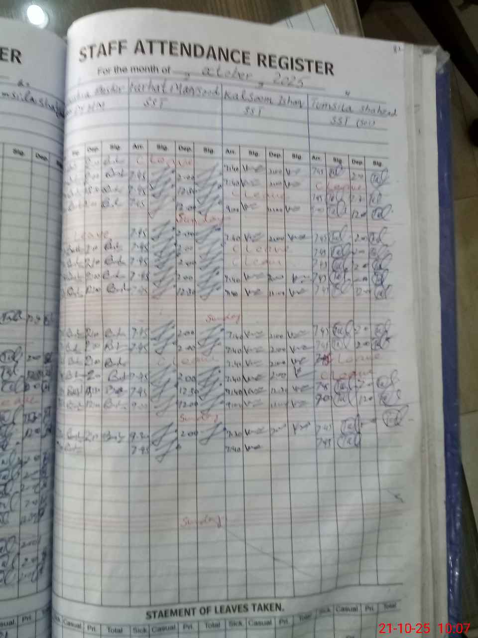 | Leave | Duty | Absent | Maternity | Medical | Ex- Pak |