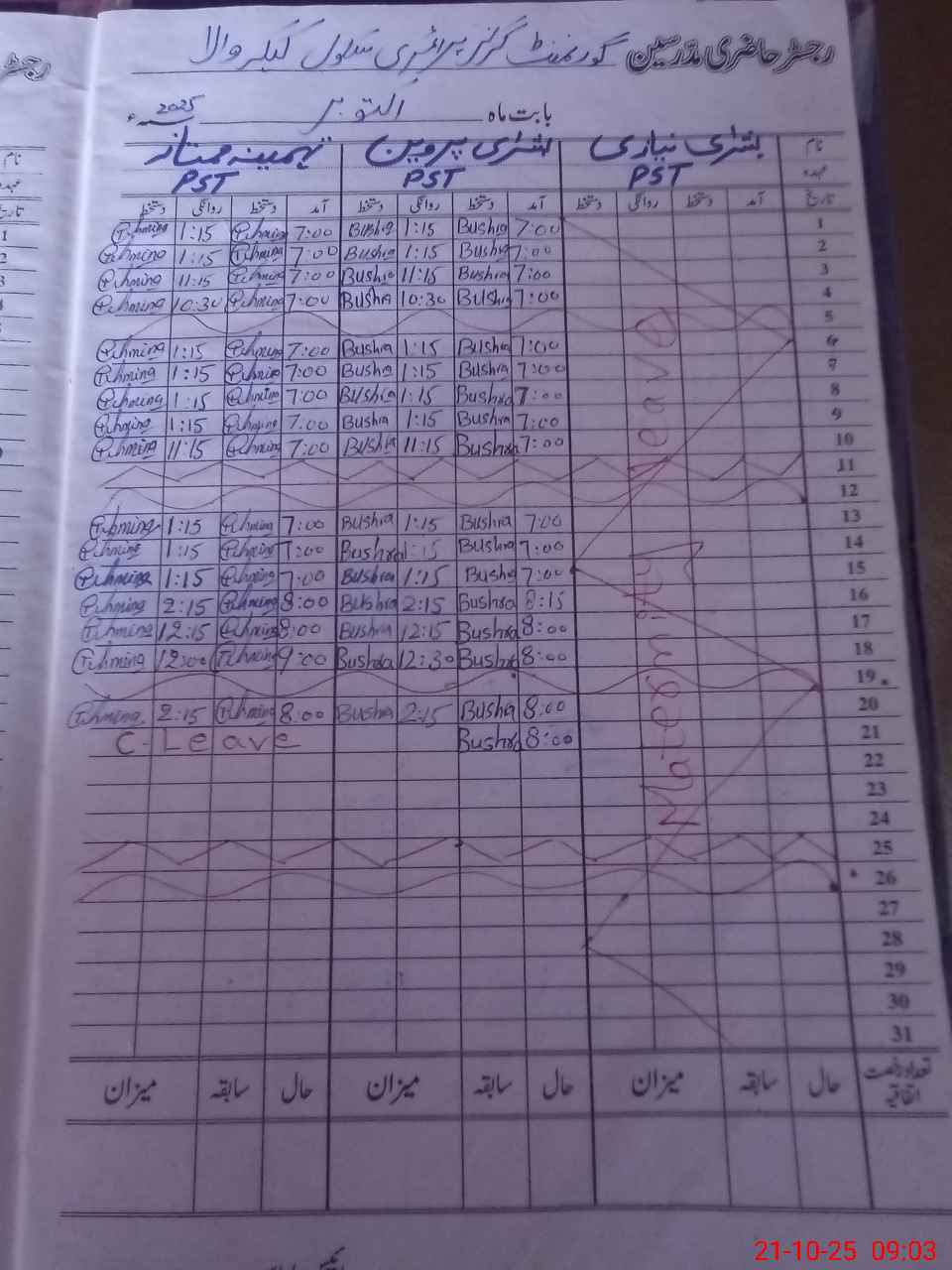 | Name: BU**** NI**** Designation: (School Headmaster's/Headmistress's) PST Phone/Cell Number: 03**** |