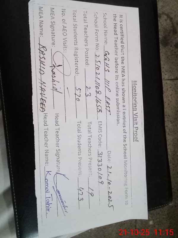 | Certified that this School was Inspected by the Undersigned MEA/DMO Today and the Information Stated Above is as Per Record. | |||||