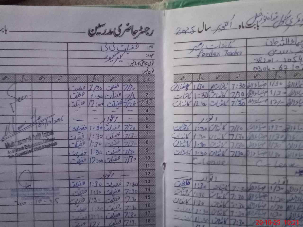 | Name: Mu**** Qa**** Designation: (School Headmaster's/Headmistress's) PST Phone/Cell Number: 03**** |