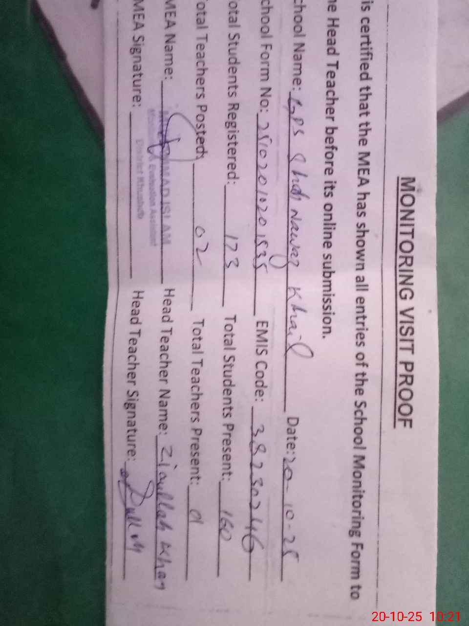 | EMIS Code: 38230246 | Name of School: GPS SHAH NAWAZ KHAIL | |||