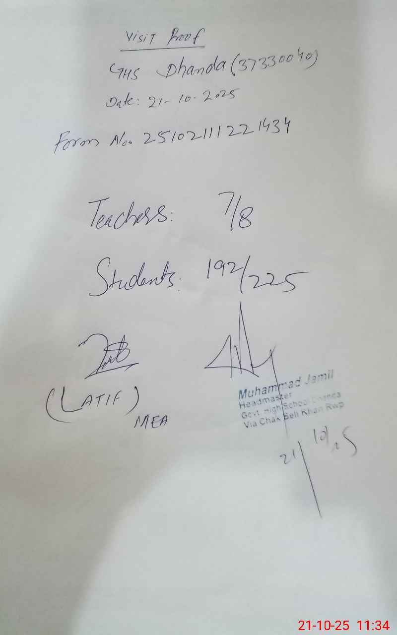 | EMIS Code: 37330040 | Name of School: GHS DHANDA | |||