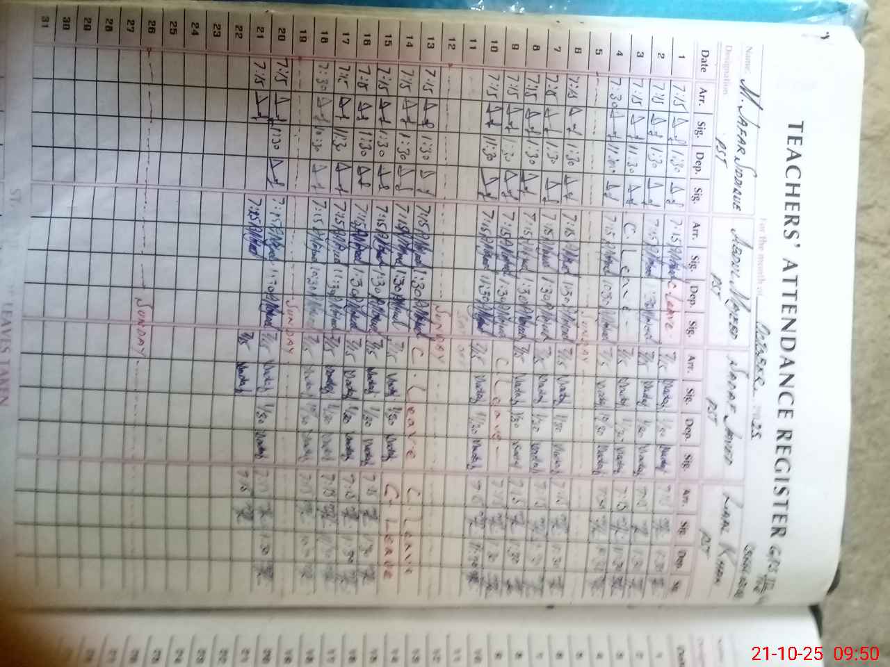 | CNIC | Full Name | Designation | R/C | Absence During Last Calender Month |