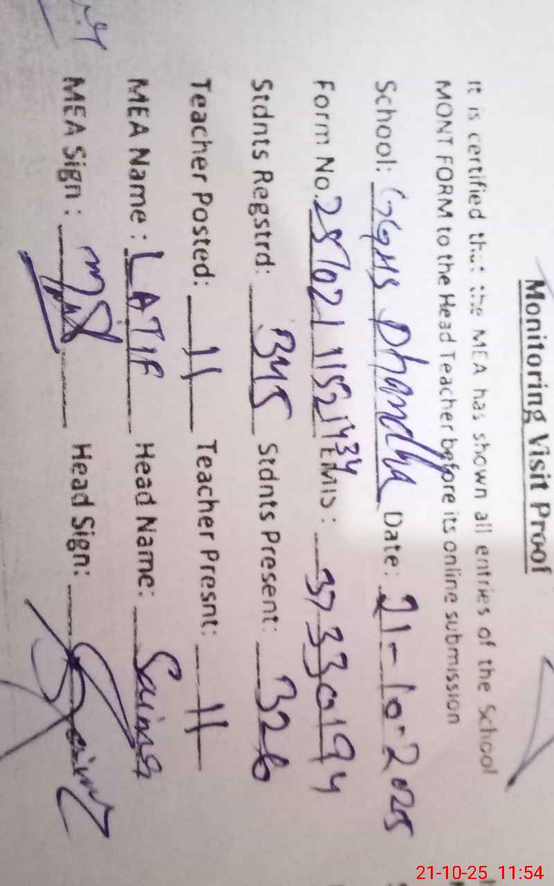 | Attendance Register | Head Teacher | MEA with School | Visit Proof |