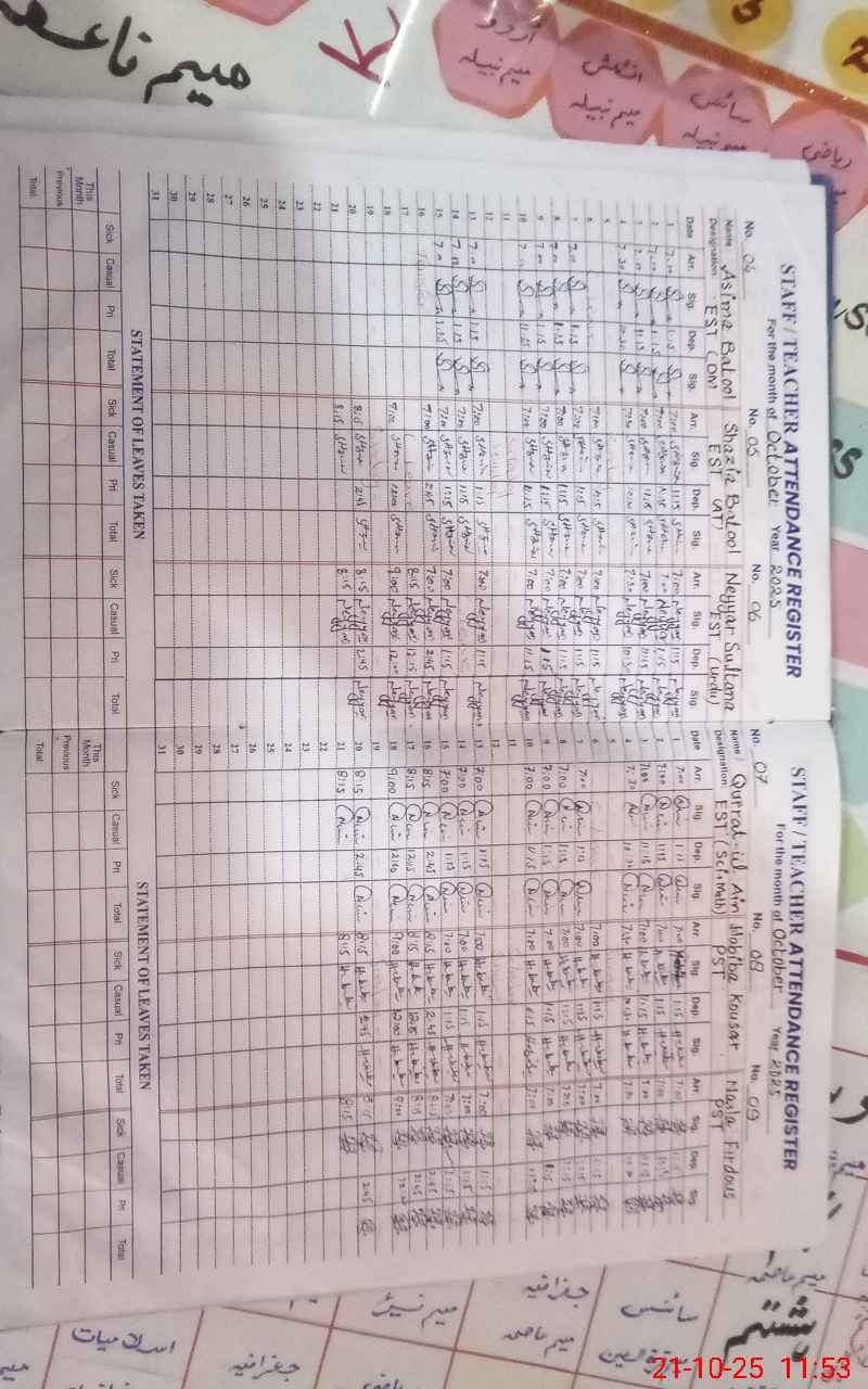 | CNIC | Full Name | Designation | R/C | Absence During Last Calender Month |