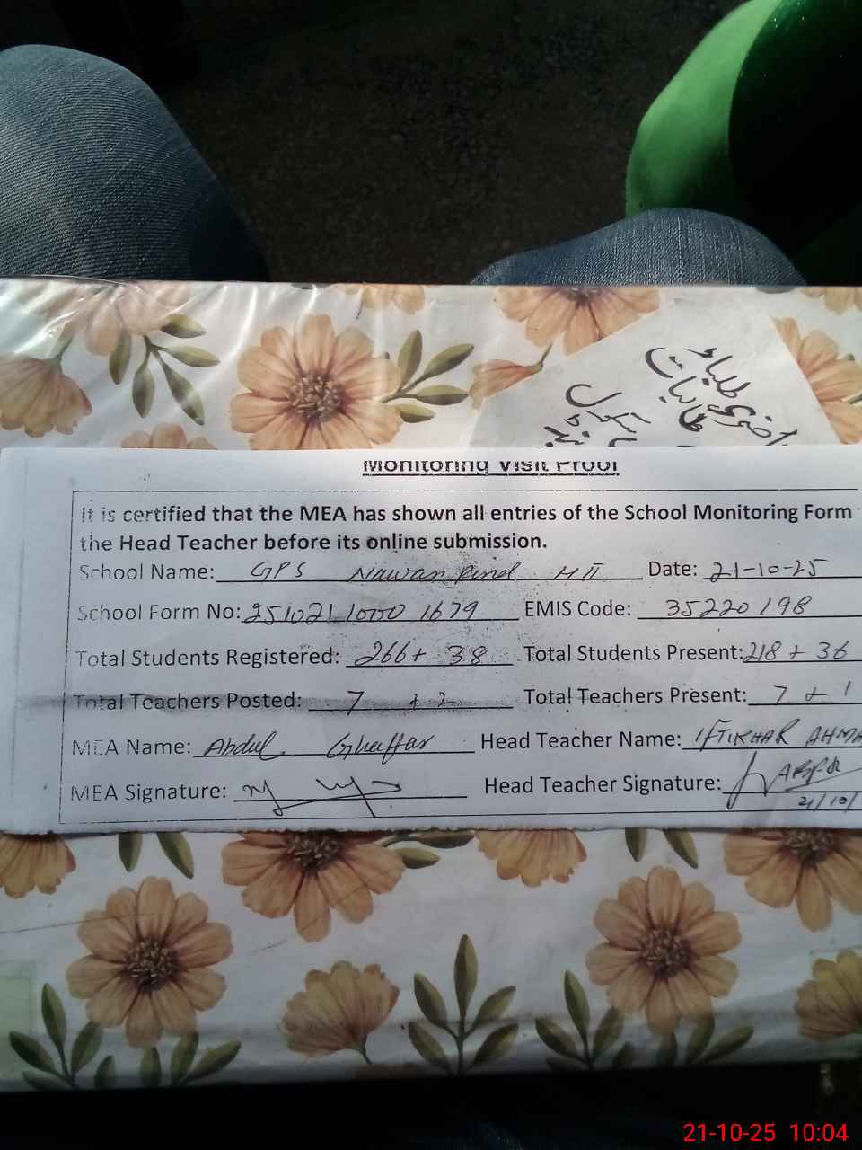 | EMIS Code: 35220198 | Name of School: GPS NAWAN PIND H-II JOHAR TOWN TEHSIL CITY | |||