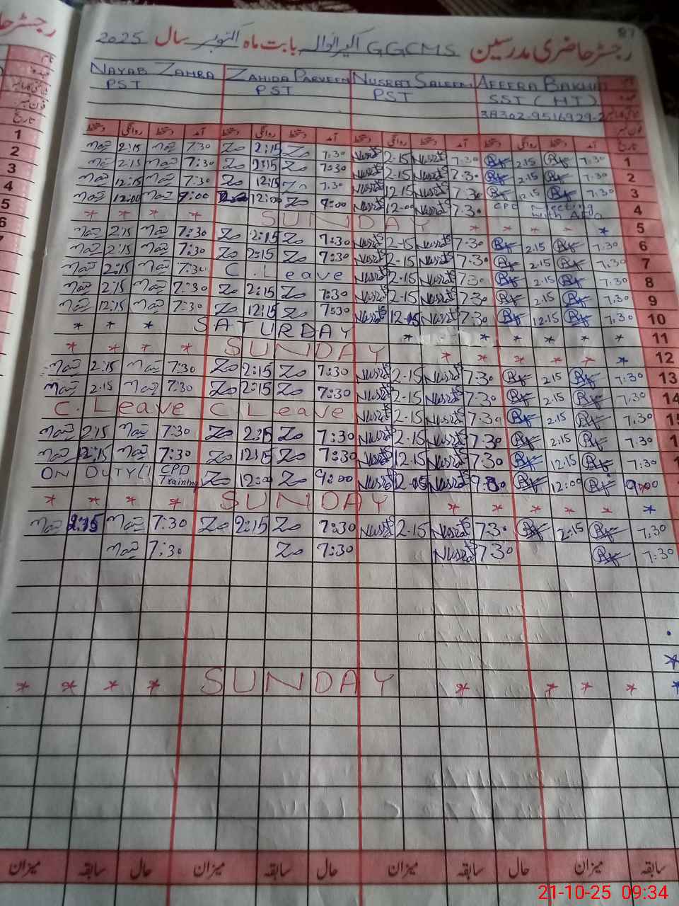 | CNIC | Full Name | Designation | R/C | Absence During Last Calender Month |