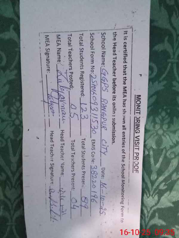 | EMIS Code: 38220196 | Name of School: GGPS RANGPUR CITY | |||