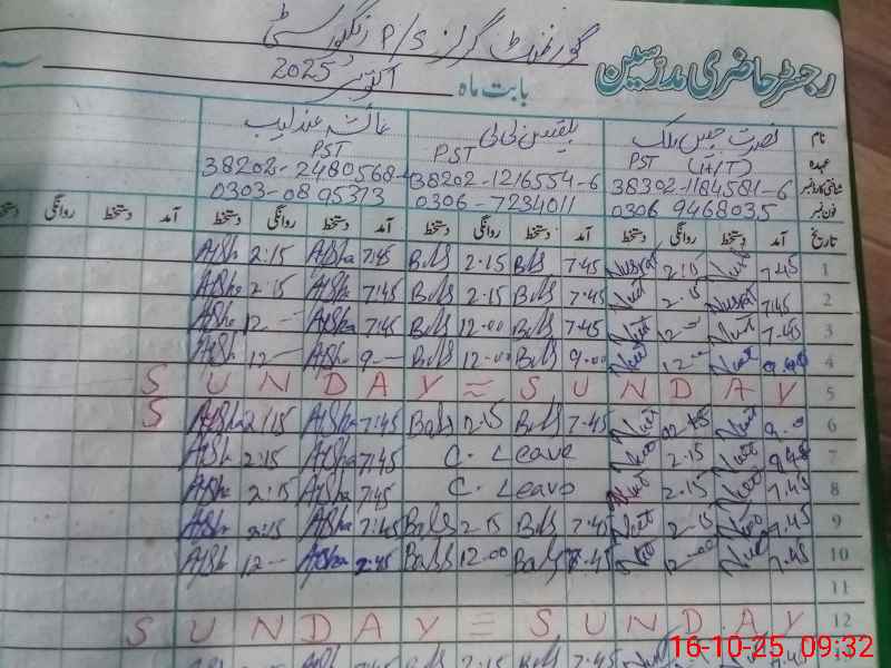 | Name: NU**** JA**** Ma**** Designation: (School Headmaster's/Headmistress's) PST Phone/Cell Number: 03**** |
