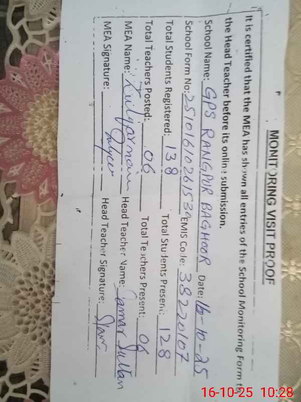 | EMIS Code: 38220107 | Name of School: GPS RANGPUR BAGHOOR | |||