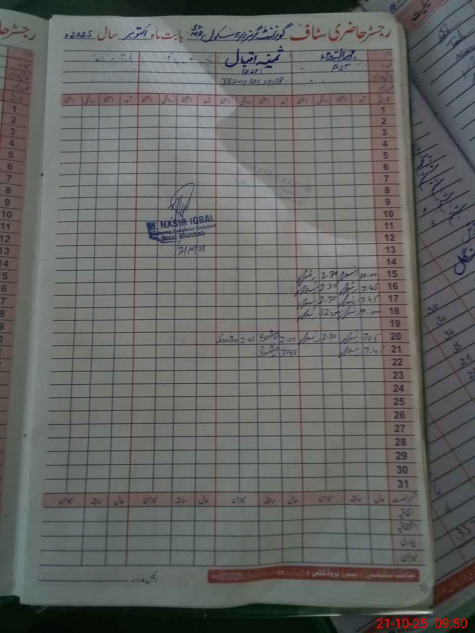 | CNIC | Full Name | Designation | R/C | Absence During Last Calender Month |