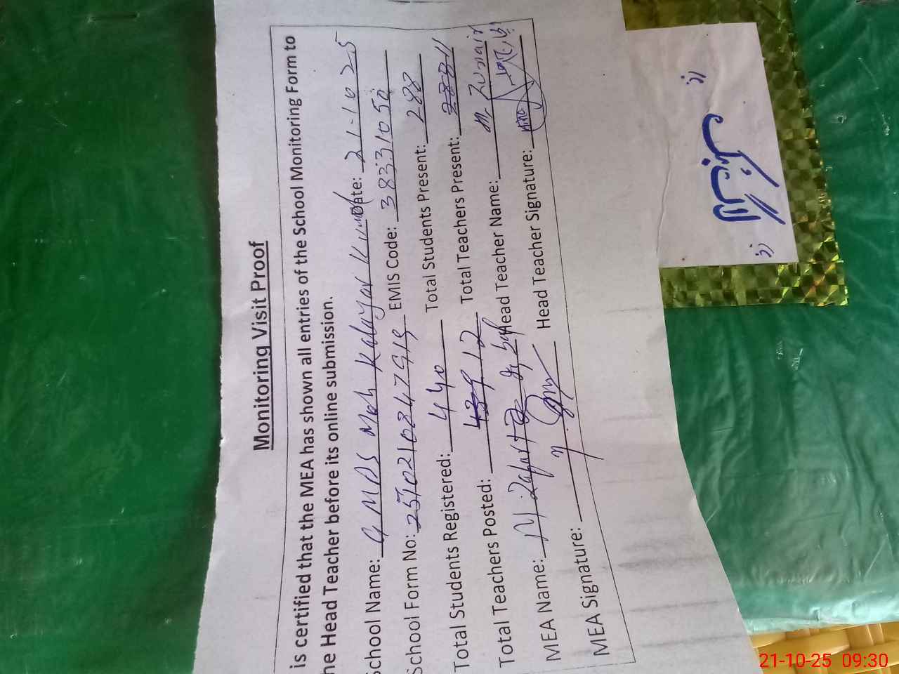 | Certified that this School was Inspected by the Undersigned MEA/DMO Today and the Information Stated Above is as Per Record. | |||||