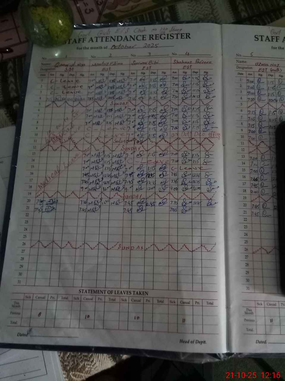 | Leave | Duty | Absent | Maternity | Medical | Ex- Pak |