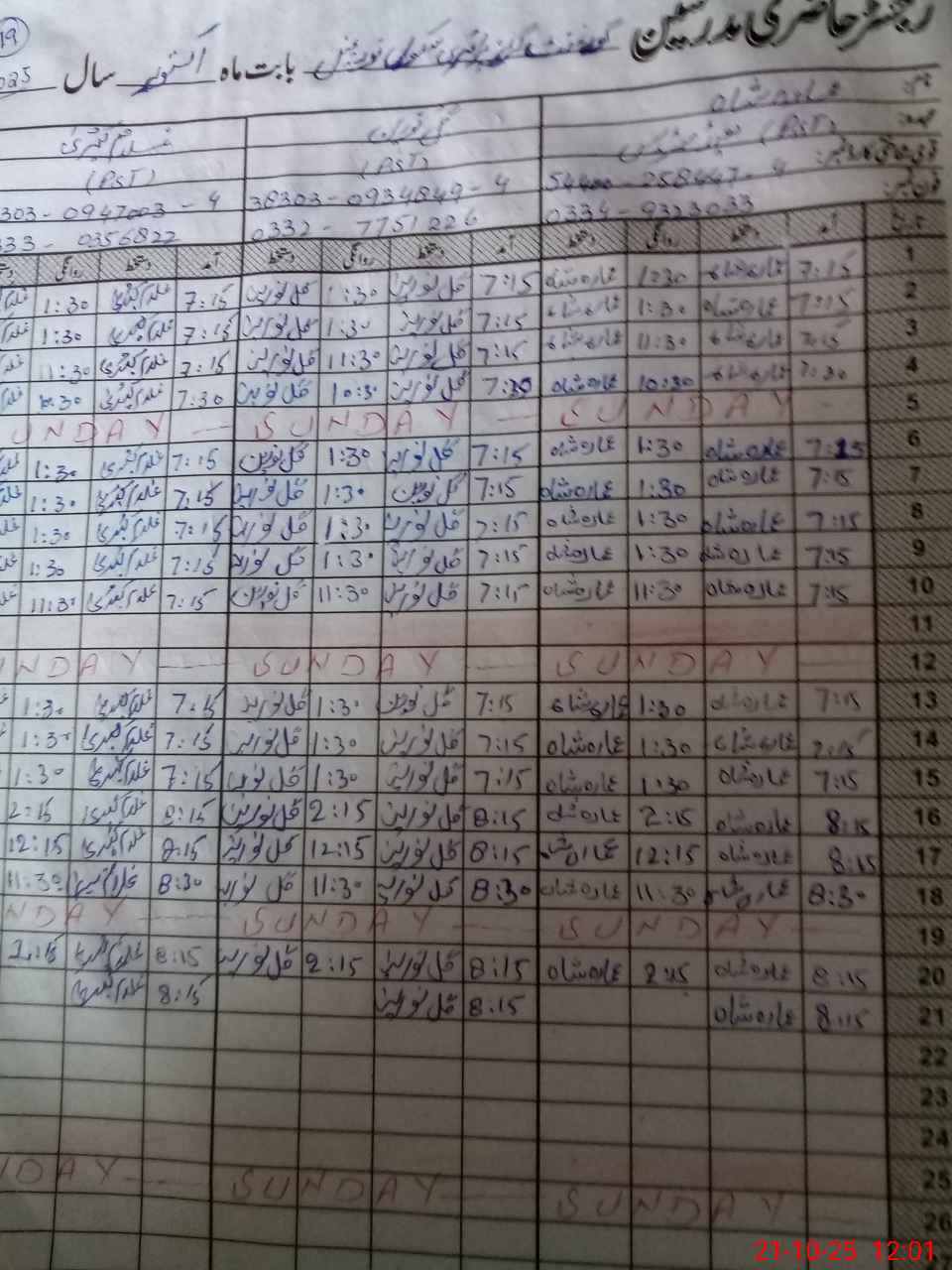| CNIC | Full Name | Designation | R/C | Absence During Last Calender Month |