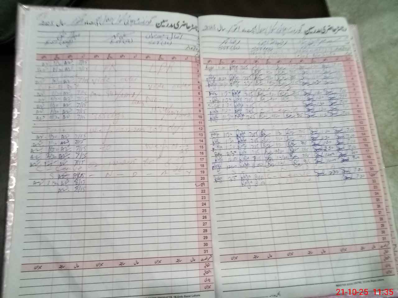 | CNIC | Full Name | Designation | R/C | Absence During Last Calender Month |