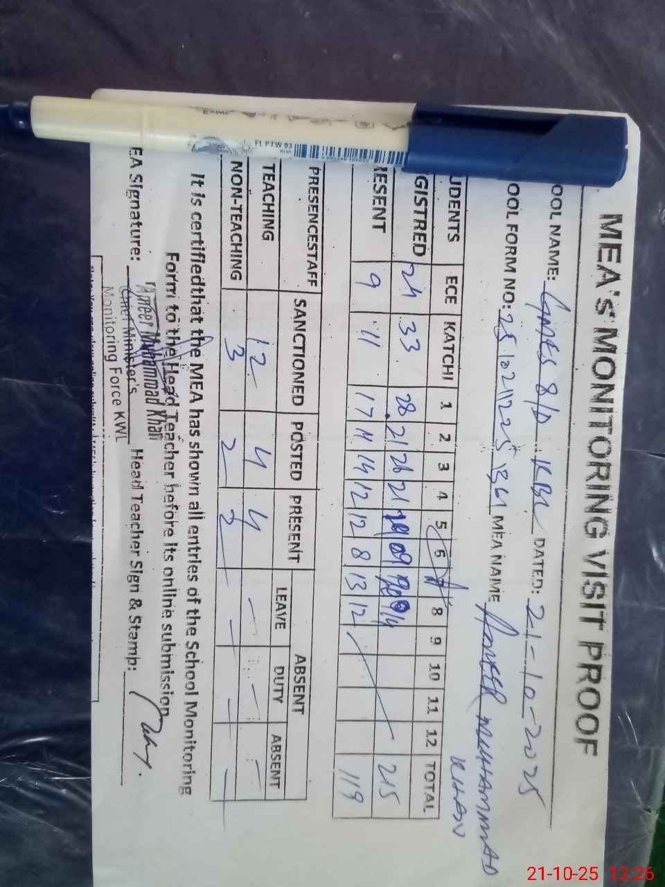 | EMIS Code: 36410127 | Name of School: GMES 8/D, ABDUL HAKIM | |||
