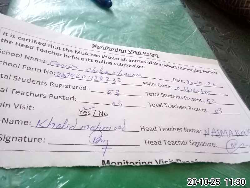 | EMIS Code: 34120485 | Name of School: GMPS CHABBA CHEEMA | |||