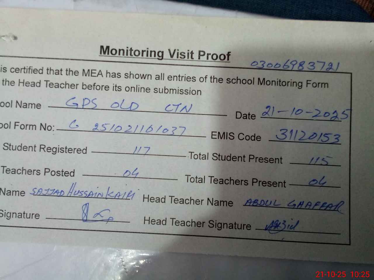 | EMIS Code: 31120153 | Name of School: GPS OLD CHISHTIAN NO. 2 | |||