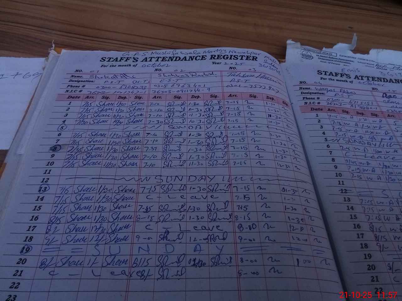 | CNIC | Full Name | Designation | R/C | Absence During Last Calender Month |