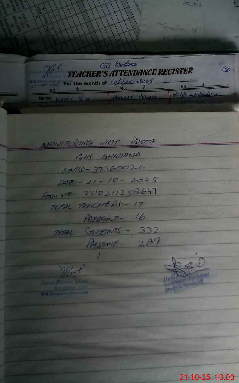 | EMIS Code: 37360022 | Name of School: GHS BHADANA | |||