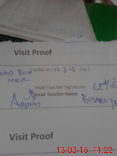 | Attendance Register | Head Teacher | MEA with School | Visit Proof |