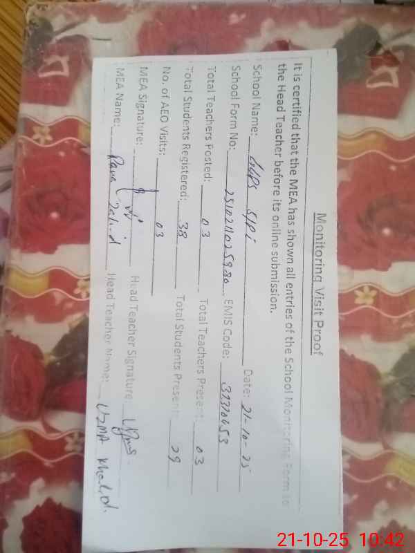 | Certified that this School was Inspected by the Undersigned MEA/DMO Today and the Information Stated Above is as Per Record. | |||||