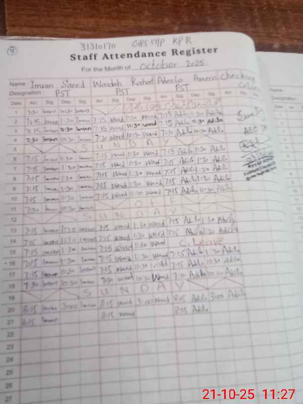 | Name: Im**** Sa**** Designation: (School Headmaster's/Headmistress's) PST Phone/Cell Number: 03**** |