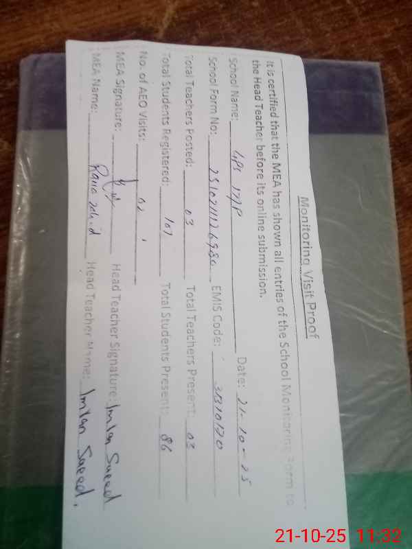 | EMIS Code: 31310170 | Name of School: GPS CHAK NO 17/P KHANPUR | |||